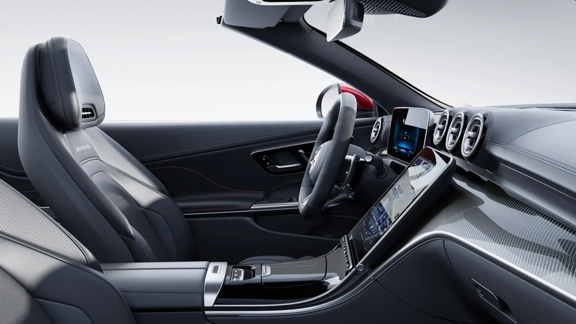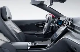 El interior convertible es lujoso, con asientos Nappa ventilados, AIRSCARF calefactable y MBUX hyperscreen, ofreciendo un espacio para cuatro que combina sol, viento y tecnología premium con deflector para confort al aire libre.