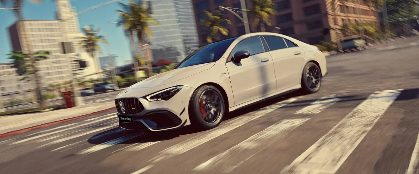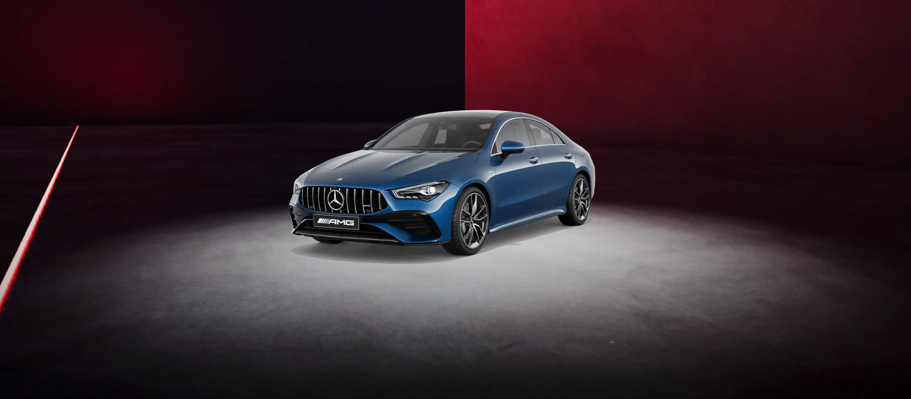El AMG CLA 35 4MATIC es un sedán coupé aerodinámico con parrilla AMG agresiva, faros LED afilados y llantas de 19 pulgadas, ofreciendo una silueta de cuatro puertas que fusiona elegancia con deportividad pura para un look futurista y dinámico.