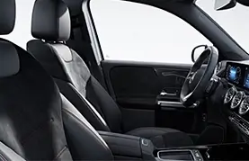 Con capacidad para siete, el interior del GLB ofrece asientos plegables flexibles, materiales suaves como cuero sintético y un sistema de info entretenimiento MBUX intuitivo, proporcionando espacio generoso y comodidad para familias en viajes diarios o escapadas.