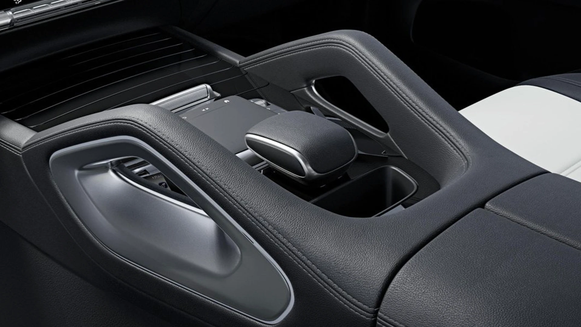 El interior para siete es ejecutivo con cuero Nappa, tercera fila plegable y hyperscreen, proporcionando un espacio versátil con masajes en asientos y audio Burmester para lujo híbrido en viajes familiares.