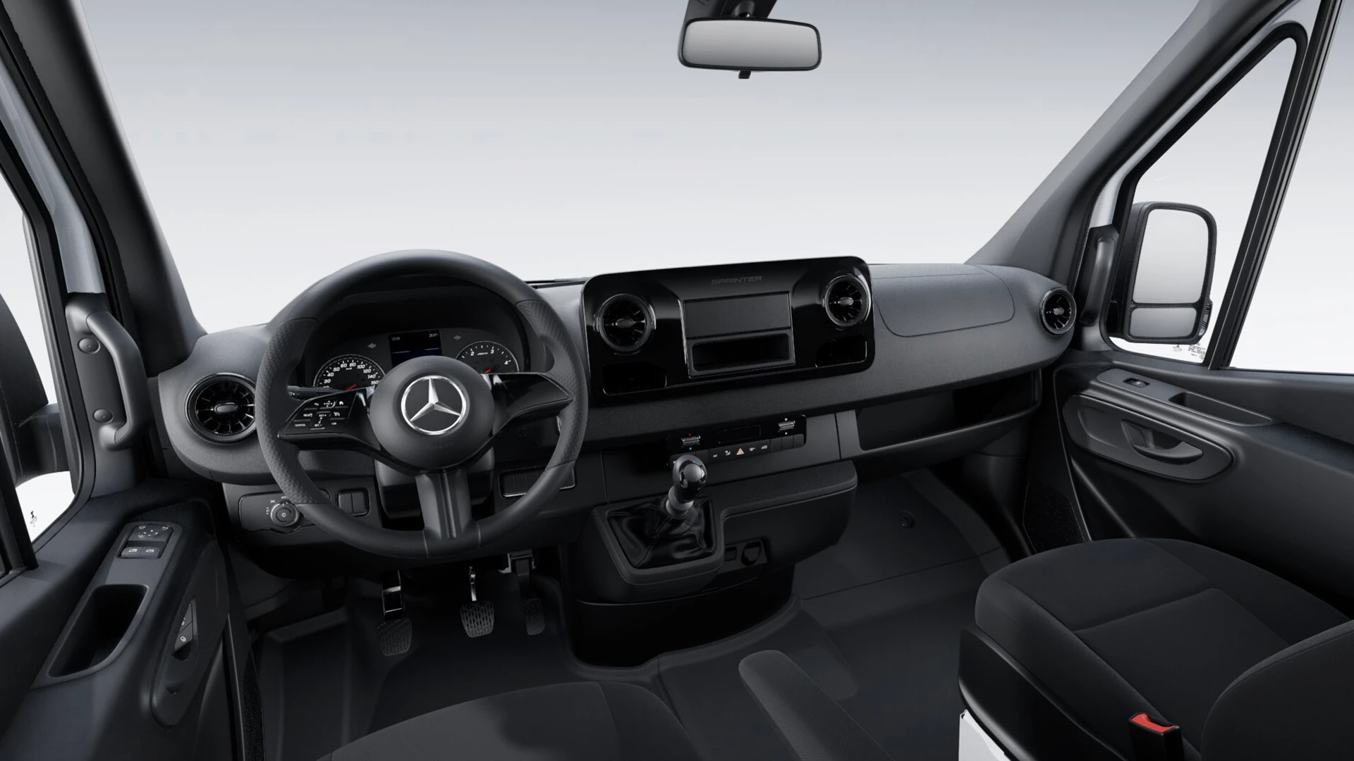 El interior de la Mercedes-Benz 411 CDI Pasajeros está diseñado para ofrecer confort y capacidad. Incorpora asientos amplios y acolchados, pasillos espaciosos y un sistema de climatización eficiente que mantiene un ambiente agradable durante el viaje. Las ventanas panorámicas aportan luz natural y una experiencia visual más agradable. En la zona del conductor, el tablero integra controles modernos, una pantalla multifunción y una ergonomía que facilita la conducción.